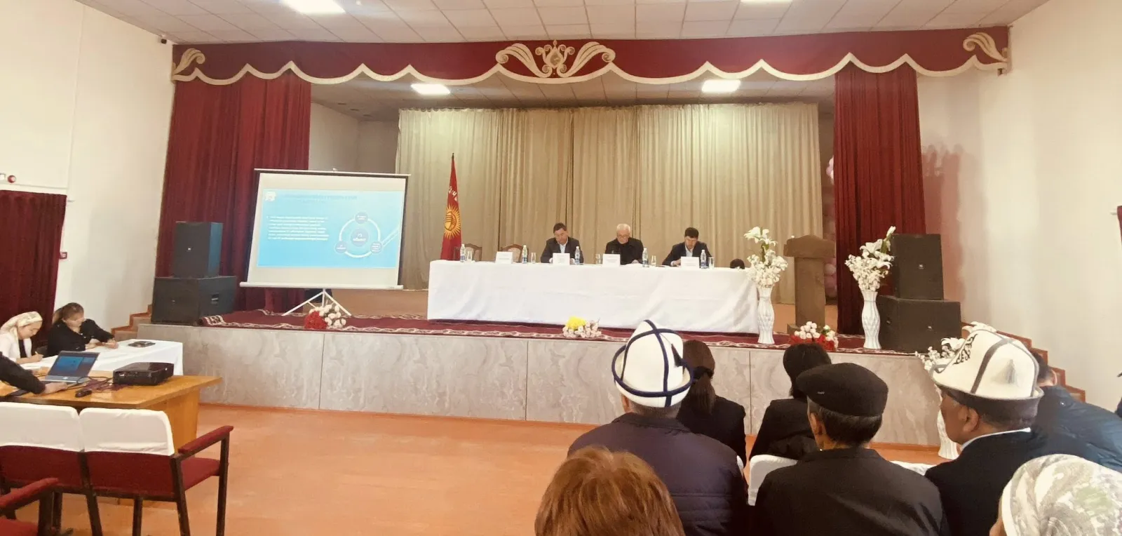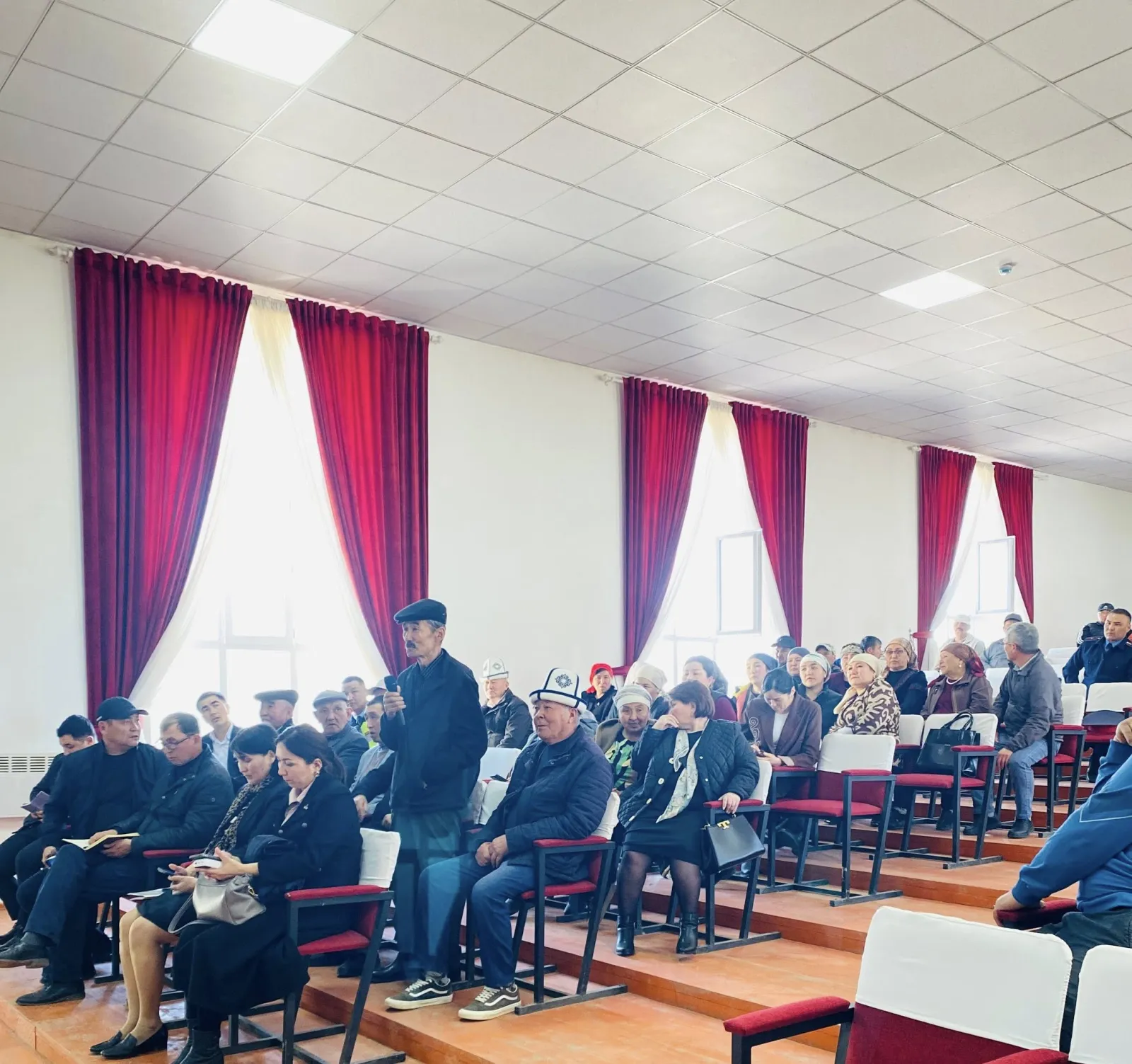 Жыйынга район мамлекеттик администрациясынын башчысы-аким Умаров Нурланбек Эшматович катышып, айыл тургундары менен түз баарлашуу жүргүзүлдү.