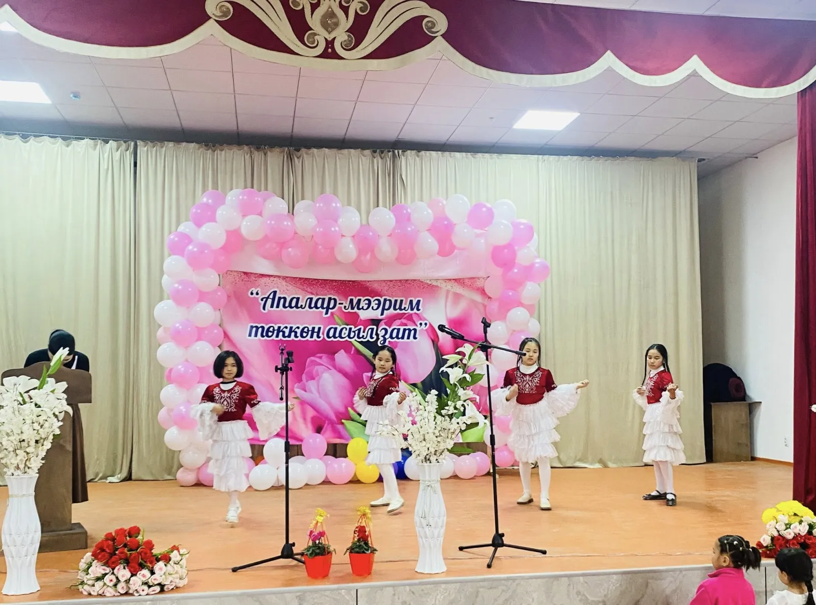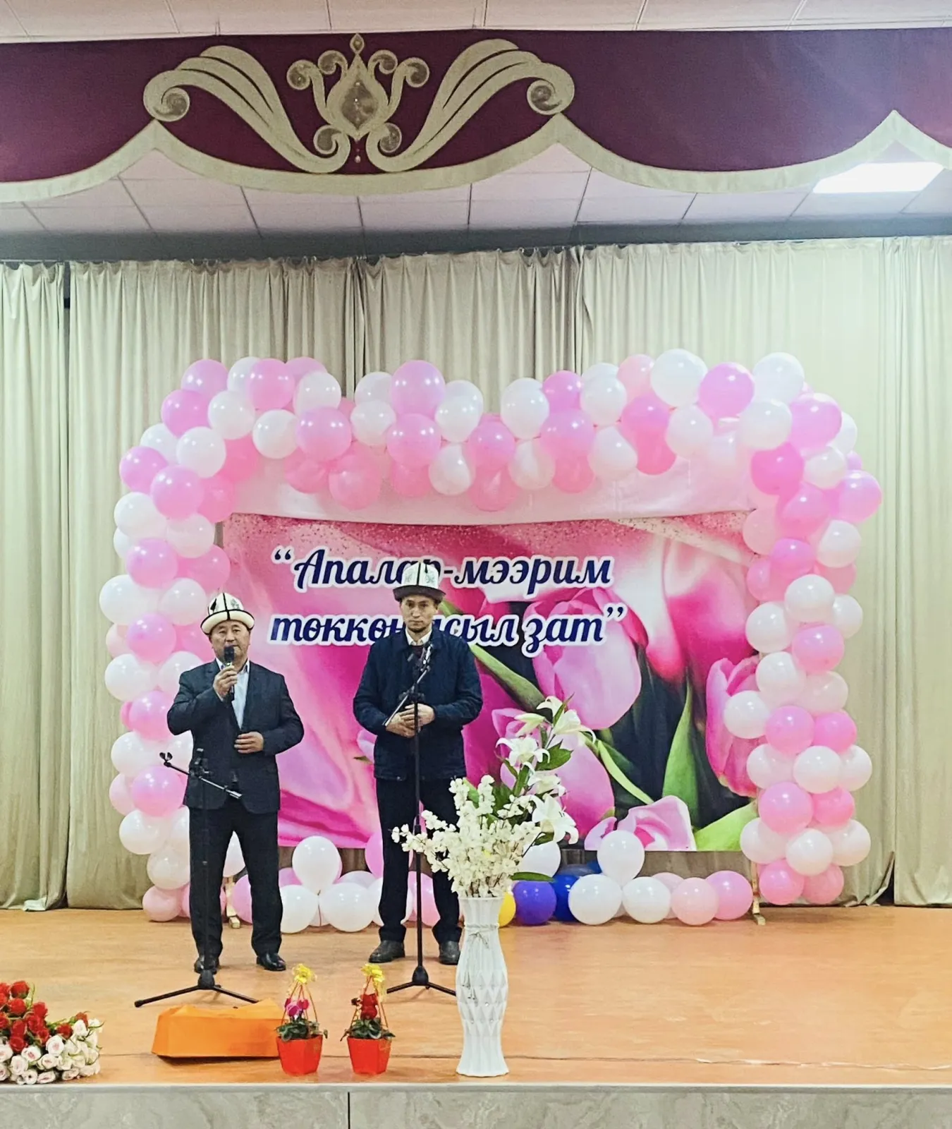 Майрамдык кечеде концерттик программа тартууланып, апаларыбызга белектер берилди. Ошондой эле кызыктуу оюндар уюштурулуп, катышуучуларга шаң-шаттык тартуулады.